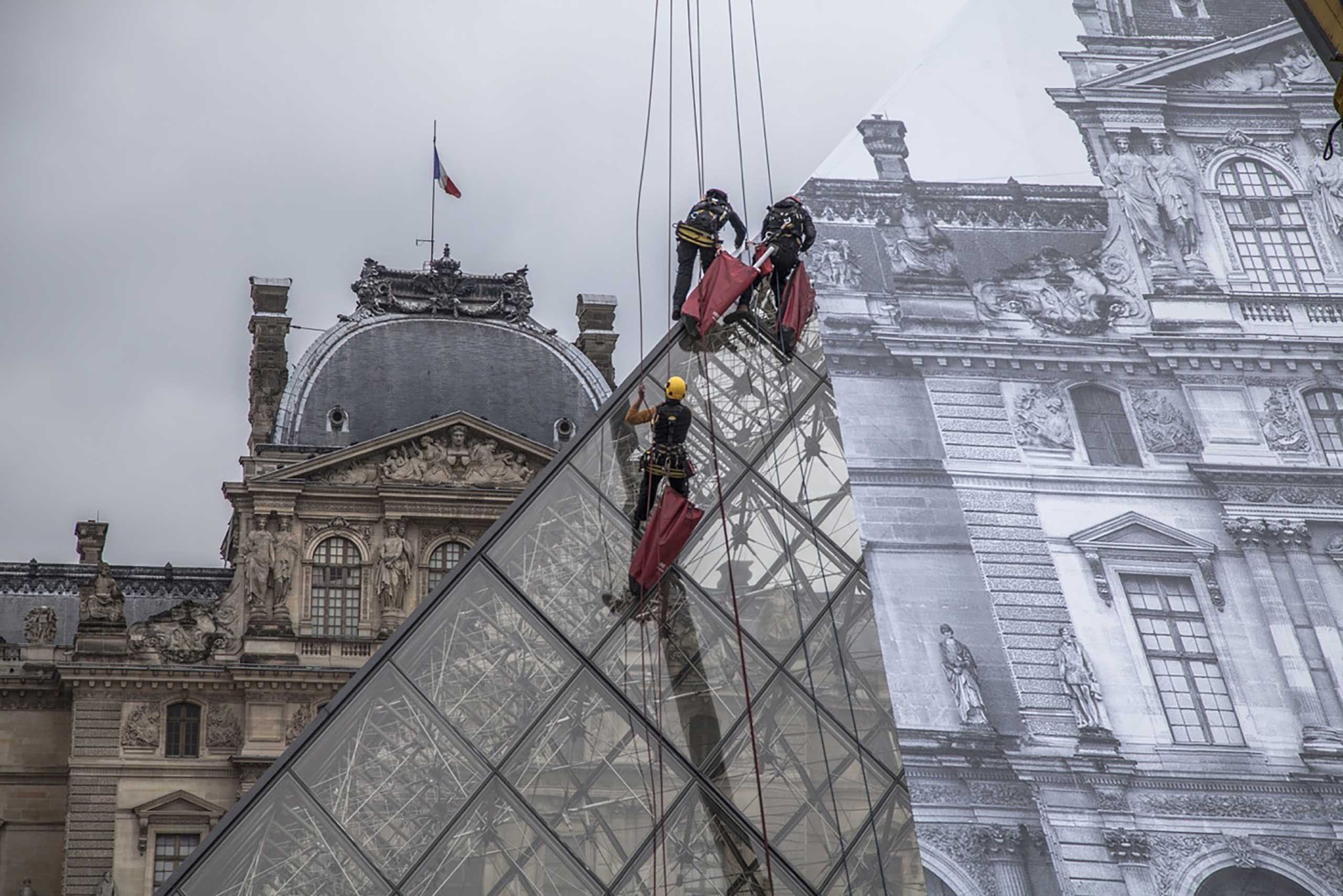 That year, he also worked on his giants series in rio de janeiro during the 2016 olympics, creating new gigantic sculptural installations at the scale of the city, depicting competing athletes in action, supported by scaffolding. The french artist jr in the napoleon courtyard, paris, 2016. Let's have a look at the link between jr and the icon of the world's largest museum. He has covered the west side of the pyramide du louvre with a historical image of the pavilion sully behind it.